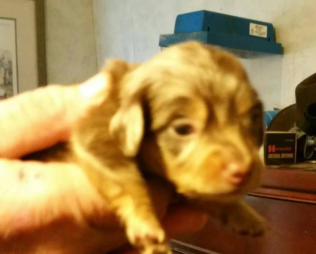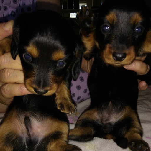 CKC Mini Dachshund Puppies 1 Female Chocolate/Tan Long Hair, 1 Male Black/Silver Dapple Long Hair; CKC $800 ea. – Ready for pick up on 12-02-18